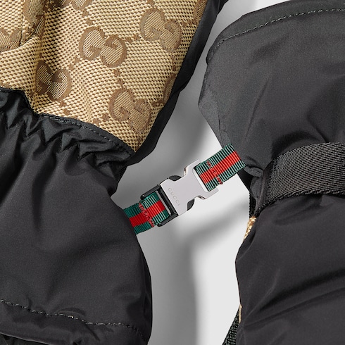 Gucci Altitude, la prima collezione di abbigliamento sportivo invernale della Maison, combina prestazioni elevate e codici distintivi. Realizzati in tessuto nero, questi guanti imbottiti sono caratterizzati da pannelli in tessuto GG beige e marrone scuro. Un'etichetta motivo Web verde e rosso completa la silhouette.