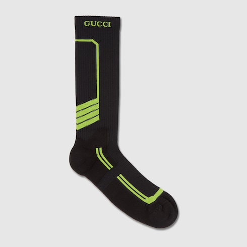 Gucci Altitude, la prima collezione di abbigliamento sportivo invernale della Maison, combina prestazioni elevate e codici distintivi. Realizzati in cotone nero e verde, questi calzini presentano un logo Gucci ricamato.