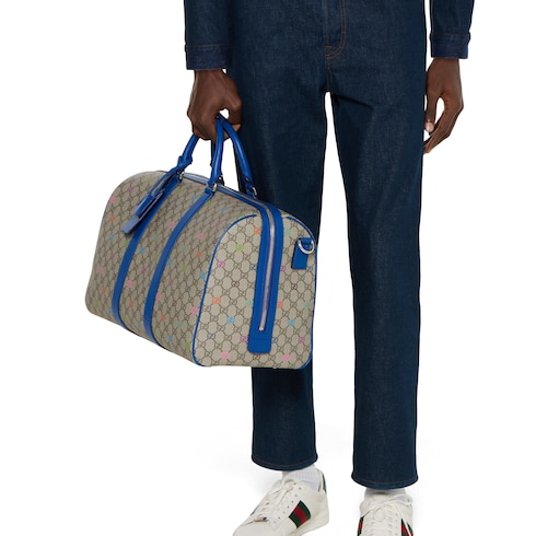 Questo borsone fa parte della collezione Pre-Fall 2025. Realizzato in tessuto rivestito con monogramma GG, presenta una stampa multicolore all-over e una finitura tono su tono.