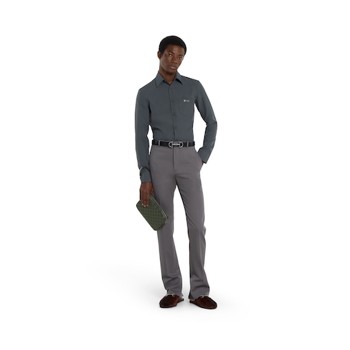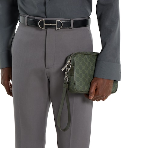Nella collezione Autunno Inverno 2025, il tessuto rivestito con monogramma GG propone una nuova interpretazione di uno dei motivi emblematici della Maison. Qui impreziosisce una pouch misura piccola completata da finiture in pelle tono su tono.