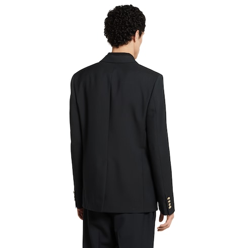 I capi per tutti i giorni sono impreziositi dal dettaglio Gucci cimosa, che conferisce un tocco urbano al guardaroba. Realizzata in lana blu scuro, questa giacca è arricchita da bottoni in metallo Gucci.