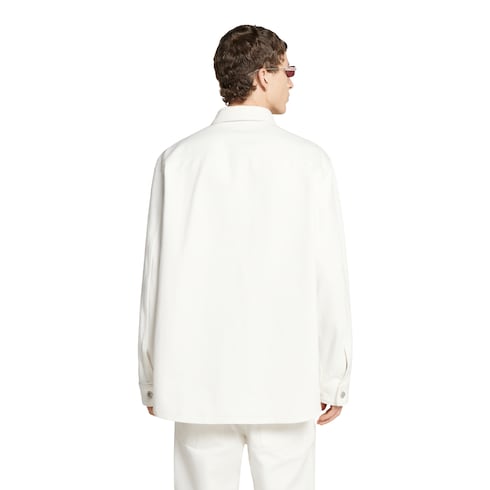 I capi per tutti i giorni sono impreziositi dal dettaglio Gucci cimosa o dalla stampa logo vintage Gucci, che conferiscono un tocco urbano. Realizzato in denim di cotone bianco, questo capo è caratterizzato da bottoni in metallo Gucci e dettaglio Gucci cimosa.