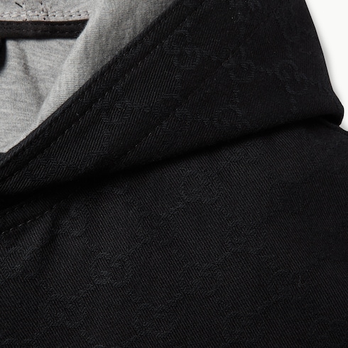 - Denim di cotone GG jacquard nero accoppiato con jersey di cotone