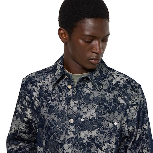 Camicia in denim GG jacquard