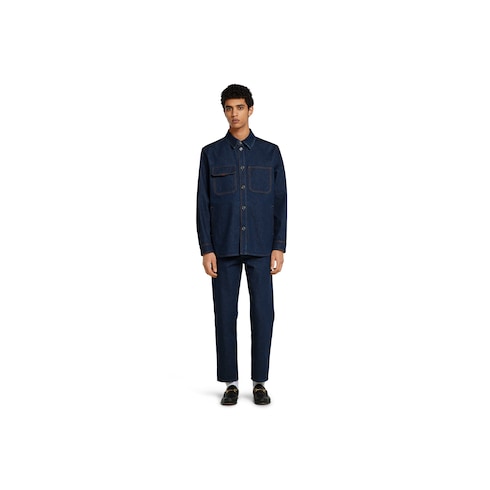 La collezione Pre-Fall presenta capi in denim contraddistinti da dettagli raffinati che impreziosiscono i look di tutti i giorni. Questa camicia, realizzata in denim di cotone, è definita da un dettaglio loop Web verde e rosso sulla tasca.