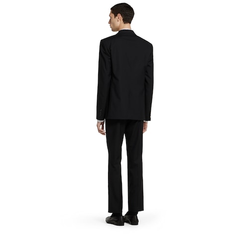 Per la collezione Pre-Fall 2025, un approccio all'abbigliamento formale ispirato alle influenze per il tempo libero e il leisurewear introduce nuovi tagli e nuove silhouette che combinano elementi esclusivi con dettagli raffinati. Questo abito è realizzato in lana in colore nero.