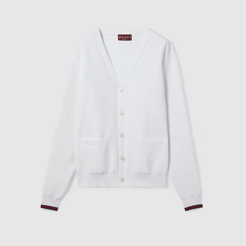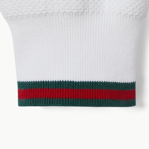 La Maison continua a esplorare il legame con il mondo del tennis, iniziato negli anni '70. Articoli esclusivi puntano su dettagli tradizionali, come il nastro Web, e su materiali innovativi. Questo cardigan in piquet di cotone sfoggia il motivo Web come dettaglio raffinato sulle finiture.