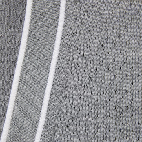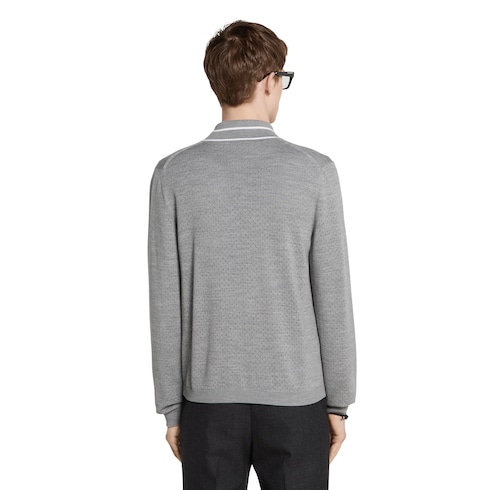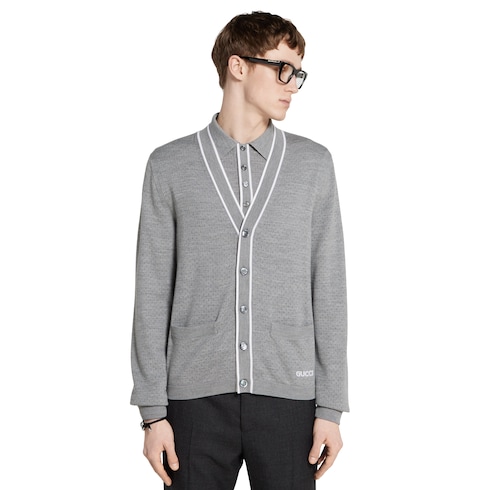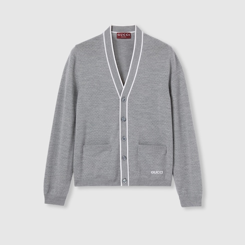 Per la collezione Pre-Fall 2025, un approccio all'abbigliamento formale ispirato alle influenze per il tempo libero e il leisurewear introduce nuovi tagli e nuove silhouette che combinano elementi esclusivi con dettagli raffinati. Questo cardigan in lana fine traforata è caratterizzato da un intarsio Gucci.
