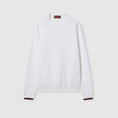 La Maison continua a esplorare il legame con il mondo del tennis, iniziato negli anni '70. Articoli esclusivi puntano su dettagli tradizionali, come il nastro Web, e su materiali innovativi. Questo maglione bianco, realizzato in maglia di cotone punto piquet, è definito da finiture con motivo Web.