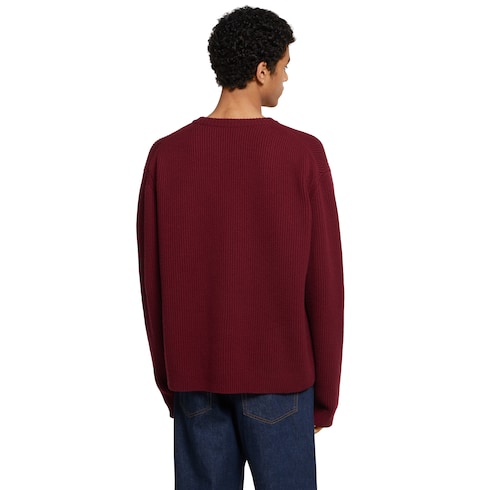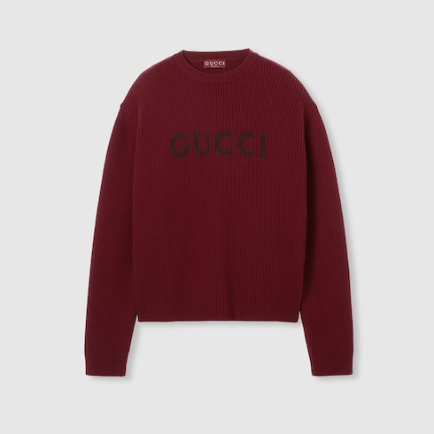 Alcuni dettagli storici della Maison impreziosiscono una selezione di capi ready-to-wear. Questo maglione color Gucci Rosso Ancora e marrone, realizzato in maglia di lana e cashmere a coste, è definito da un caratteristico intarsio con logo Gucci.