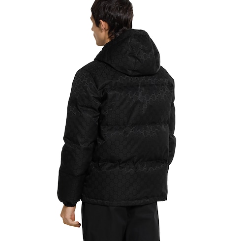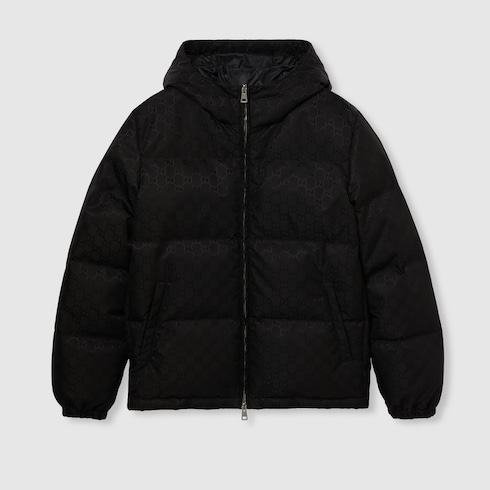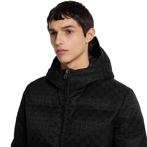 La collezionecombina alla perfezione texture versatili e dettagli sofisticati. Realizzata in tessuto di nylon GG pesante in colore nero, questa giacca piumino presenta un cappuccio fisso e una chiusura con zip.