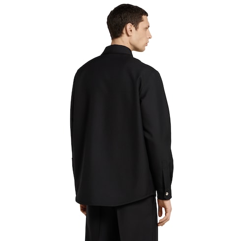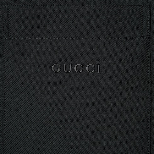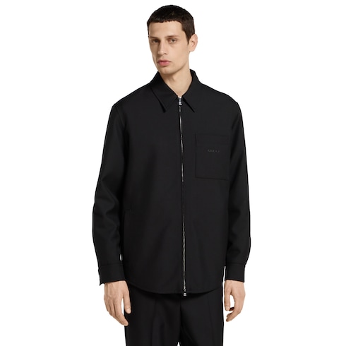 I capi della collezione Pre-Fall 2025 proposti in nuance tenui mettono in risalto loghi in rilievo e dettagli di fattura artigianale. Realizzata in twill di lana e poliestere nero, questa overshirt presenta una silhouette imbottita ed è completata dal dettaglio logo Gucci in metallo.