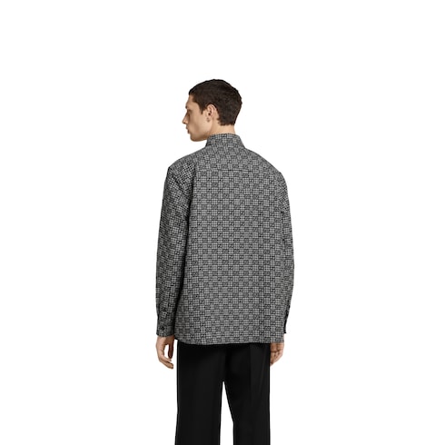 I capi della collezione Pre-Fall 2025 proposti in nuance tenui di nero, grigio e verde mettono in risalto delicati ricami floreali, loghi in rilievo e altri dettagli di fattura artigianale. Proposta in colore grigio e realizzata in lana e cotone jacquard a quadretti con motivo GG, questa camicia presenta una chiusura frontale con bottoni.