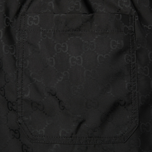 I capi per tutti i giorni sono impreziositi dal dettaglio Gucci cimosa o dalla stampa logo vintage Gucci, che conferiscono un tocco urbano. Questo costume da bagno è realizzato in nylon GG nero.