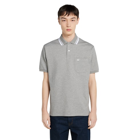 Abbinata ai dettagli tradizionali della Maison, una palette di tonalità autunnali definisce una selezione di capi ready-to-wear. Questa polo dalla vestibilità regolare è realizzata in piquet di cotone stretch grigio mélange e definita da un ricamo Doppia G.