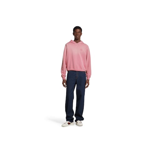 Per la collezione Pre-Fall 2025, una selezione di capi ready-to-wear è definita da silhouette rilassate impreziosite dai codici storici della Maison. Realizzata in jersey di cotone rosa, questa felpa presenta un ricamo Doppia G.
