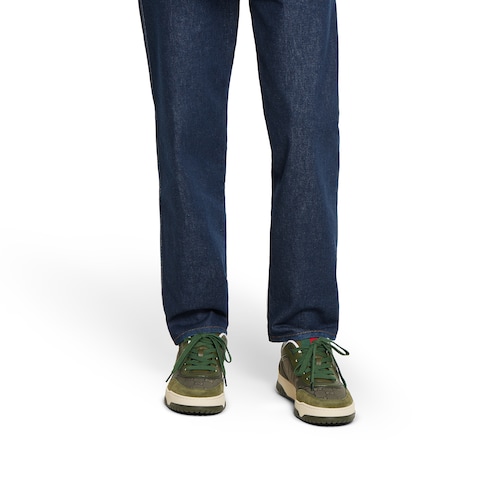 Der Gucci Re-Web präsentiert das traditionsreiche Streifen-Logo des Hauses als markantes Statement-Detail auf einer zeitgemäßen Silhouette. Dieses Modell ist aus GG Nylon gefertigt und mit einem Wildlederbesatz versehen. Neben mehreren charakteristischen Details wird der Look des neuen Sneakers vor allem durch die auffällige Zunge mit dem Web in Grün und Rot bestimmt.