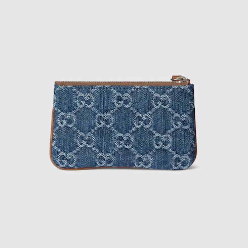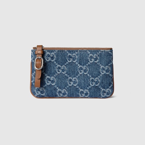 La collezione GG Emblem reinterpreta motivi emblematici con creatività e funzioni innovative ed è pensata per essere amata e custodita con cura a lungo. Incluso nella nuova linea di accessori della Maison, questo portachiavi blu e avorio è realizzato in denim GG. Il modello presenta una chiusura con zip e tiralampo in pelle e dispone di un pratico gancio portachiavi all'interno.