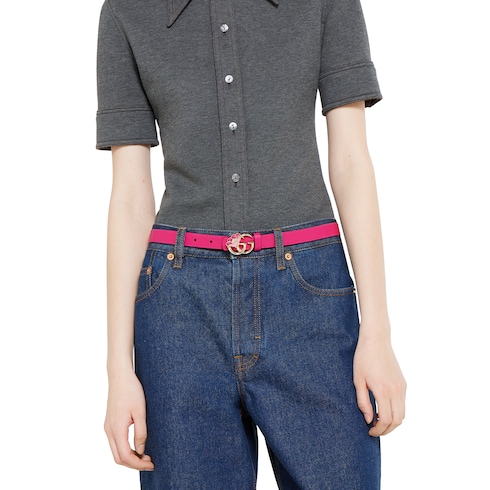 Nella collezione Autunno Inverno 2025, il motivo GG ritorna e viene riproposto in tonalità delicate. Questa cintura reversibile è realizzata in GG Supreme con rovescio in pelle e sfoggia una fibbia con Doppia G impreziosita da un dettaglio floreale smaltato.