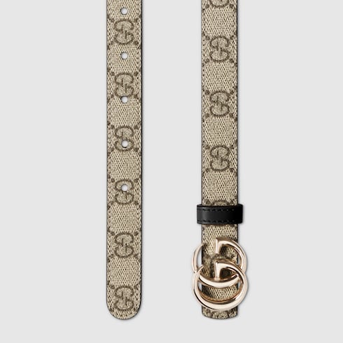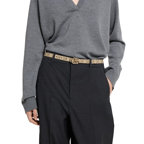 Per la collezione Autunno Inverno 2025, l'inconfondibile linea GG Marmont è proposta in nuove versioni e declinazioni inedite. Questa cintura reversibile è realizzata in GG Supreme con rovescio in pelle ed è definita da una fibbia con Doppia G.