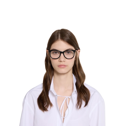 La collezione di occhiali Pre-Fall 2025 presenta silhouette eleganti impreziosite dal caratteristico nastro Web sulle aste. Questa montatura da vista dalla forma rettangolare è realizzata in acetato nero decorato con il motivo Web e con un dettaglio Incrocio GG sulle aste.