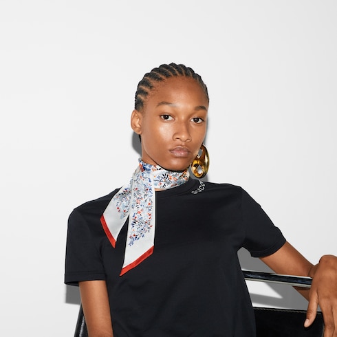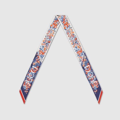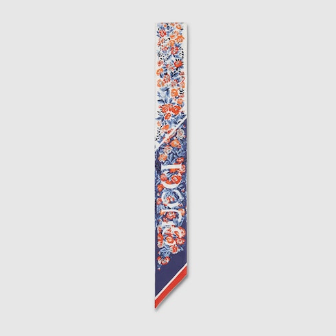 - Twill di seta blu navy e rosso con stampa floreale Gucci