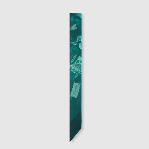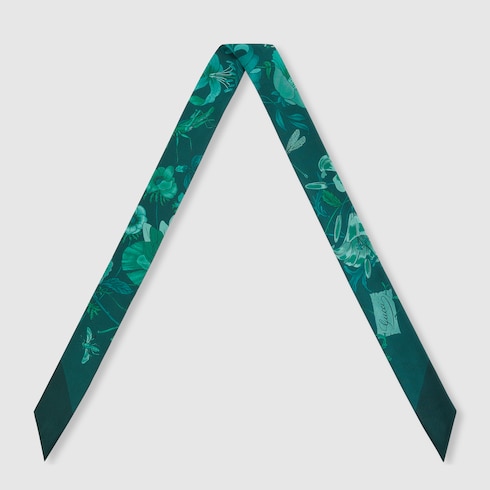 Nella collezione Autunno Inverno 2025, l'emblematico motivo GG ritorna e viene riproposto in tonalità delicate. Realizzato in seta GG verde e verde scuro, questo nastro sfoggia una delicata e romantica stampa Flora.