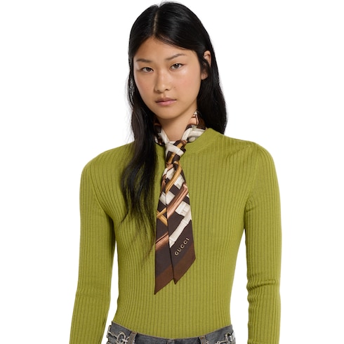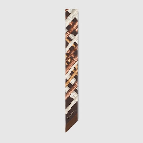 Nella collezione Cruise 2026, gli accessori in seta da donna rivisitano i motivi d'archivio con stampe innovative. Realizzato in twill di seta, questo nastro reca una stampa GG bambù all over.