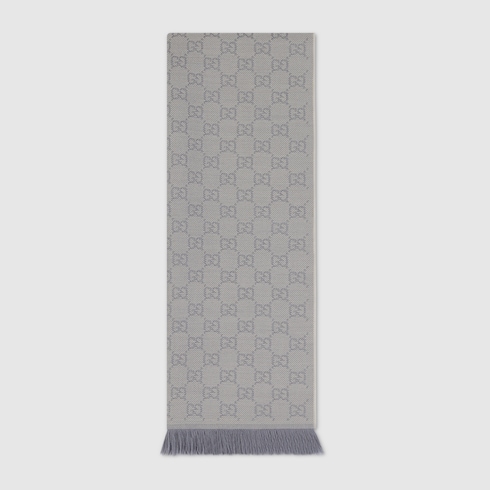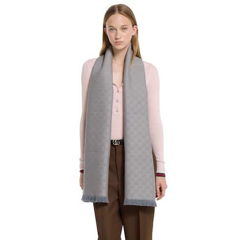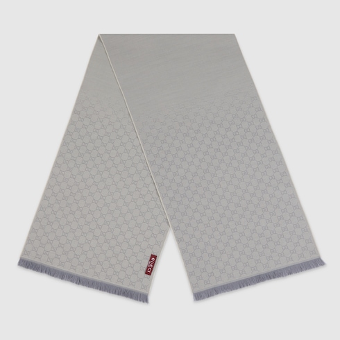 Nella collezione Autunno Inverno 2025, l'emblematico motivo GG ritorna e viene riproposto in tonalità delicate. Qui caratterizza questa sciarpa in lana impreziosita da finiture con frange.