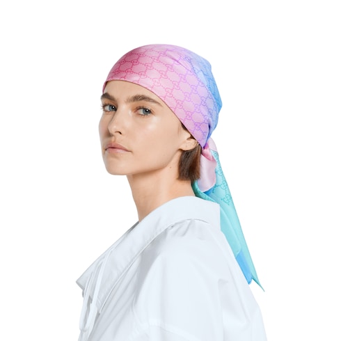 Caratterizzato da un disegno dell'illustratrice e disegnatrice Yu Cai, che nei suoi lavori unisce tecniche tradizionali e innovazioni digitali per indagare l'esistenza urbana, questo carré reinterpreta il motivo GG della Maison Gucci nell'ambito del progetto 90 x 90.