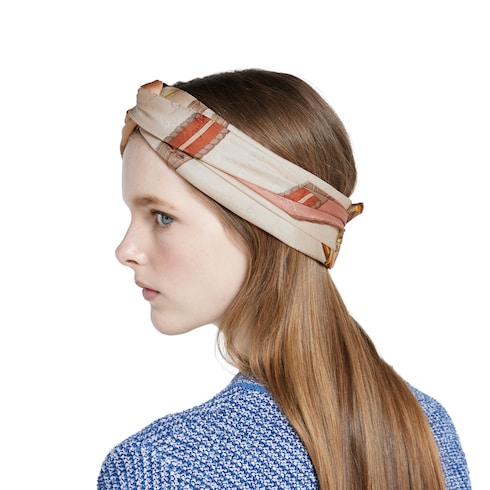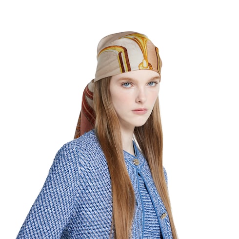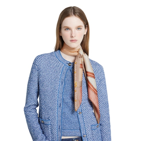 I motivi storici della Maison risplendono su nuove stampe accattivanti. Questo foulard in seta GG jacquard presenta una stampa Morsetto Gucci, che testimonia l'ispirazione della Maison al mondo equestre e a design di epoche passate.