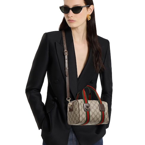 Ispirata all’emblematica silhouette da viaggio Gucci, la Maison presenta la borsa Mini GG. Realizzata in morbido tessuto GG Monogram, è dotata di manici Web e tracolla removibile. Un modello che reinterpreta i codici della Maison e la sua rinomata tradizione legata al viaggio.