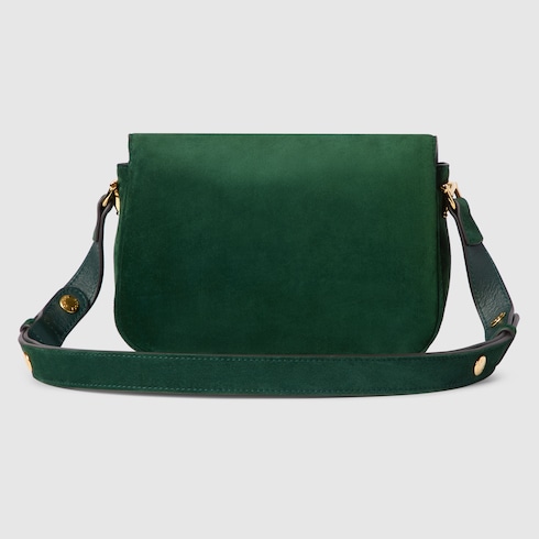 La Gucci Horsebit 1955 testimonia l'ispirazione della Maison al mondo equestre, profondamente radicata nella tradizione e nella storia di Gucci, inserendo nel design il caratteristico doppio anello con barretta. Questa borsa a spalla combina dettagli color oro chiaro con pelle scamosciata dalla mano morbida.