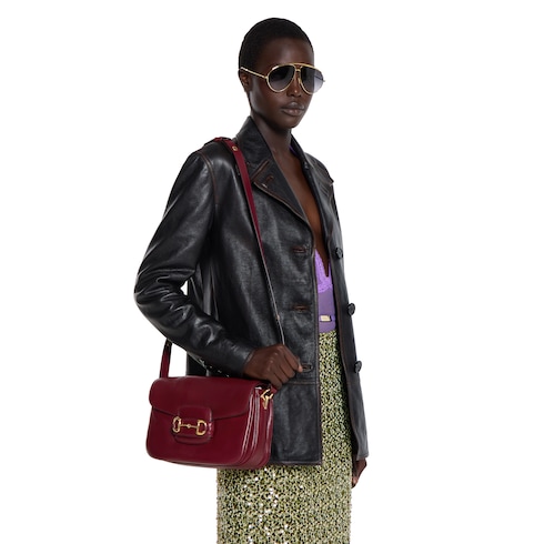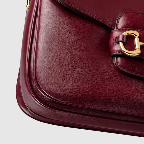 La Gucci Horsebit 1955 testimonia l'ispirazione della Maison al mondo equestre, profondamente radicata nella tradizione e nella storia di Gucci, inserendo nel design il caratteristico doppio anello con barretta. Questa borsa a spalla combina dettagli color oro chiaro con pelle liscia dalla mano morbida.