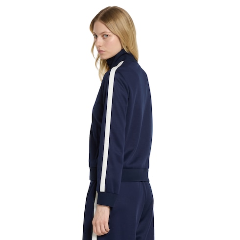 Le silhouette sportive rimandano alla raffinata maestria artigianale e all'approccio moderno che definiscono le ultime novità ready-to-wear di Gucci. Parte della collezione Pre-Fall 2025, questa giacca con cerniera realizzata in jersey tecnico presenta finiture bianche e il logo Doppia G in rilievo.