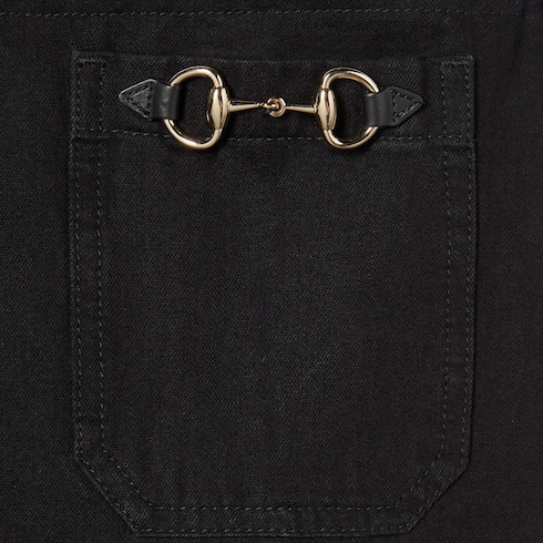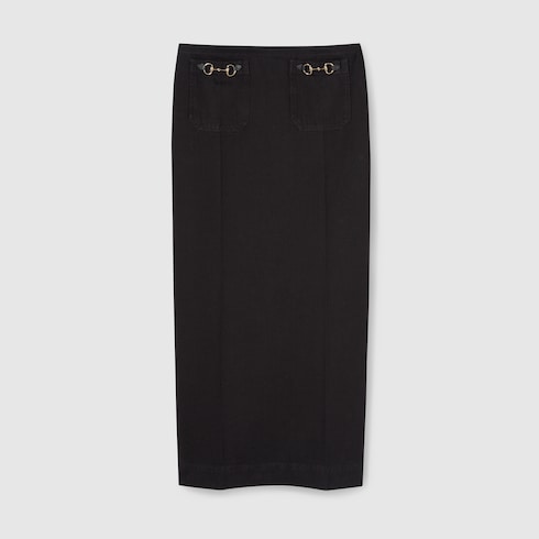 Per la collezione Pre-Fall 2025, i motivi emblematici della Maison campeggiano su texture raffinate, dal denim per gli outfit del tempo libero ai tessuti leggeri, fino alla pregiata pelle scamosciata. Questa gonna con lunghezza alla caviglia presenta dettagli Morsetto in pelle sulle tasche frontali.