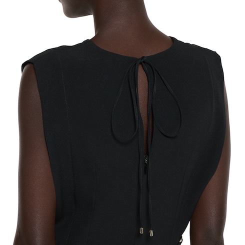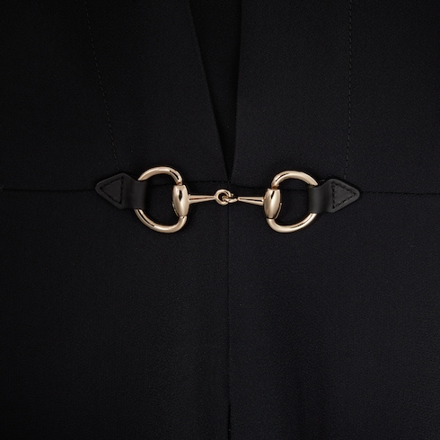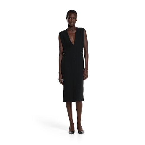 Dalle tonalità tenui ai colori più intensi, capi eleganti realizzati in materiali raffinati sfoggiano silhouette sensuali che valorizzano e arricchiscono la collezione Pre-Fall 2025. Questo abito in raso e viscosa presenta uno scollo a V ed è definito dal dettaglio Morsetto, un richiamo alla tradizione equestre della Maison.