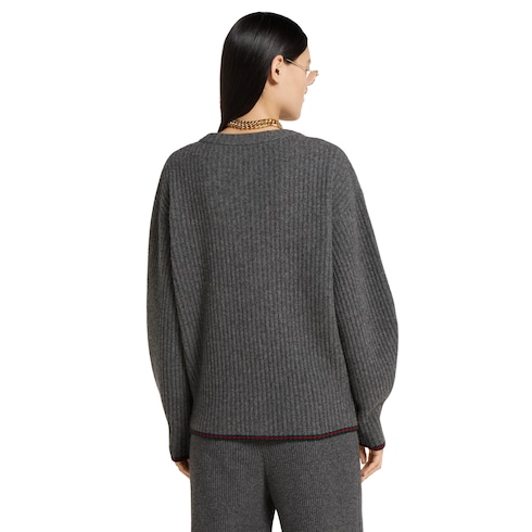 La collezione Pre-Fall 2025 presenta una nuova interpretazione dei materiali caldi su capi per il tempo libero dall'estetica sofisticata, proposti con silhouette classiche e contemporanee. Questo cardigan con scollo a V, dalla silhouette morbida, è realizzato in morbida lana feltrata a coste ed è completato da finiture con motivo Web d'archivio.