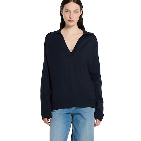 Le raffinate nuance di marrone, grigio e blu navy richiamano i colori del paesaggio naturale, che cambia senza sosta davanti ai nostri occhi. Versatile e senza tempo, la palette cromatica si abbina facilmente al guardaroba per tutti i giorni. Questa polo oversize è realizzata in lana ultrafine ed è impreziosita da un ricamo Incrocio GG.