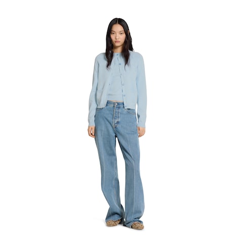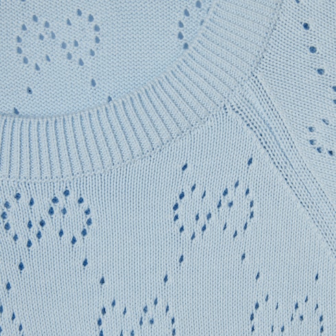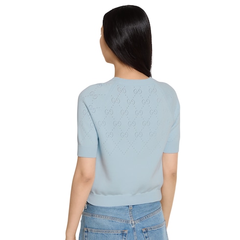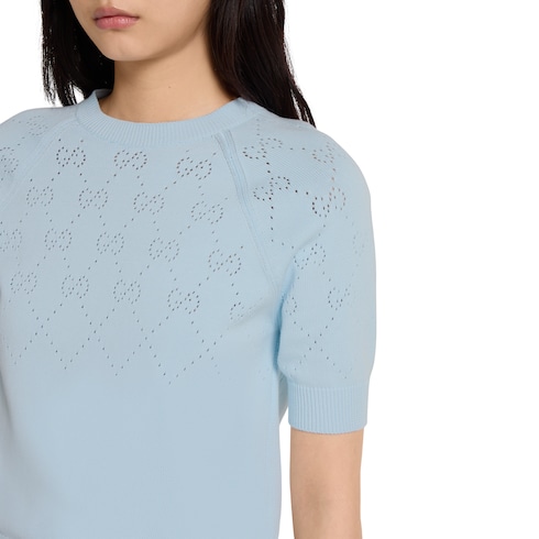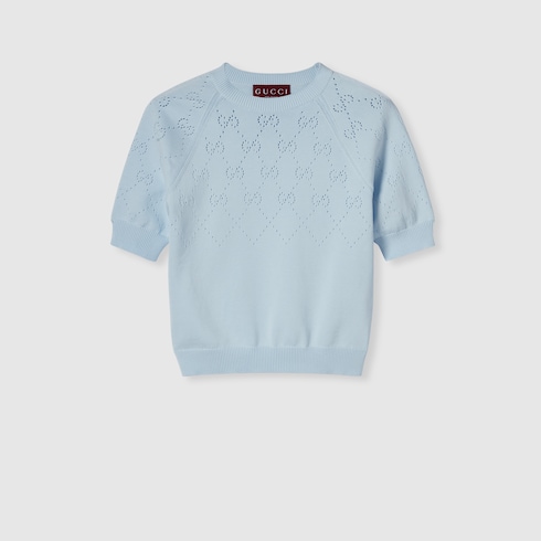 Il monogramma GG reinterpreta l'eleganza e la maestria artigianale che hanno caratterizzato la storia della Maison. Questo top girocollo, realizzato in cotone celeste, è definito dal dettaglio motivo GG rombi.