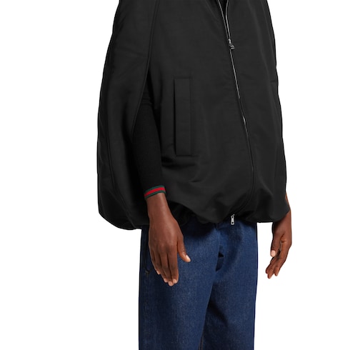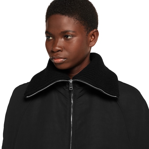 La collezione Pre-Fall 2025 presenta una nuova interpretazione dei materiali caldi su capispalla e modelli outerwear sofisticati, proposti con silhouette classiche e contemporanee. Questa giacca a mantella dallo stile contemporaneo, realizzata in faille di poliestere, presenta dettagli unici, tra cui il colletto in maglia e l'orlo con coulisse, ed è completata da un discreto dettaglio con logo.