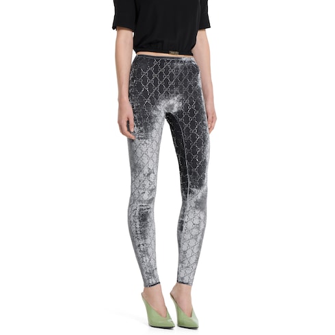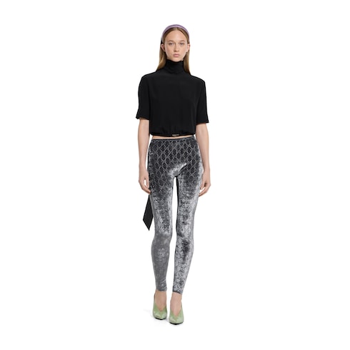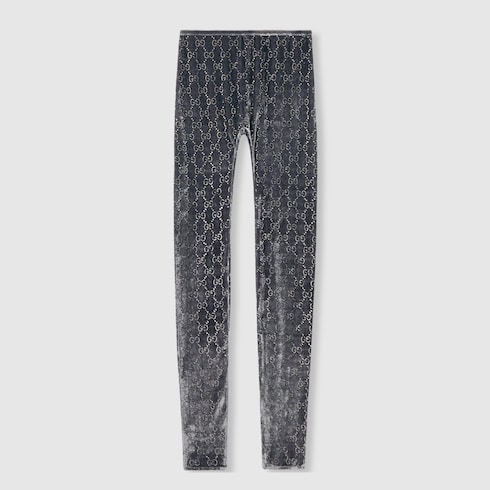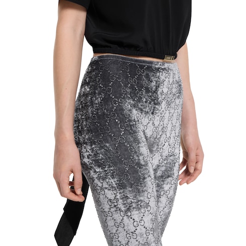 Nella collezione Autunno Inverno 2025, i leggings in ciniglia stretch vengono reinventati con un tocco luminoso. Questo modello è impreziosito da un ricamo GG con cristalli all over, per una rivisitazione in chiave contemporanea dei codici distintivi della Maison.
