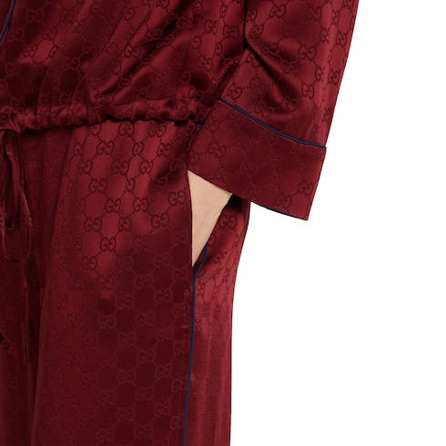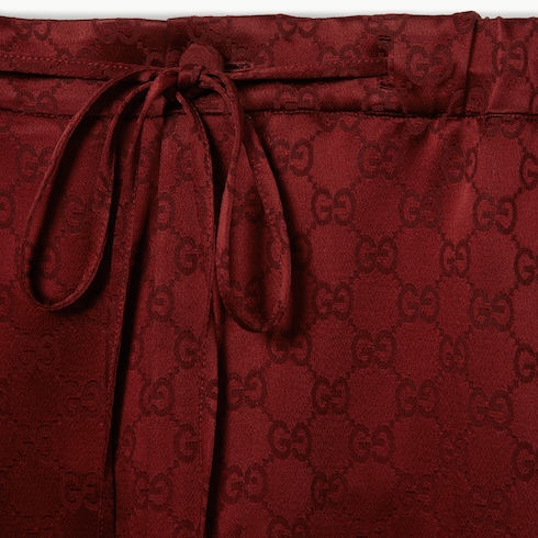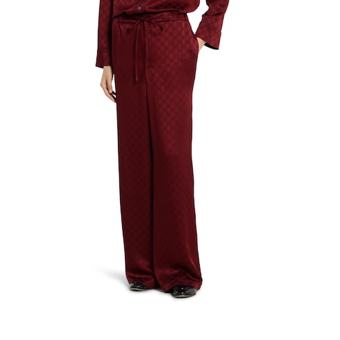 Dalle tonalità tenui ai colori più intensi, capi eleganti realizzati in materiali raffinati sfoggiano silhouette sensuali che valorizzano e arricchiscono la collezione Pre-Fall 2025. Questo paio di pantaloni dallo stile casual è proposto in un delicato raso GG.
