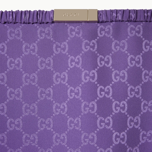 Parte della collezione Autunno Inverno 2025, questa gonna presenta una vita elasticata con ruche e fibbia Gucci in metallo. Il modello, senza fodera, è completato da uno spacco sul retro e una chiusura con cerniera.