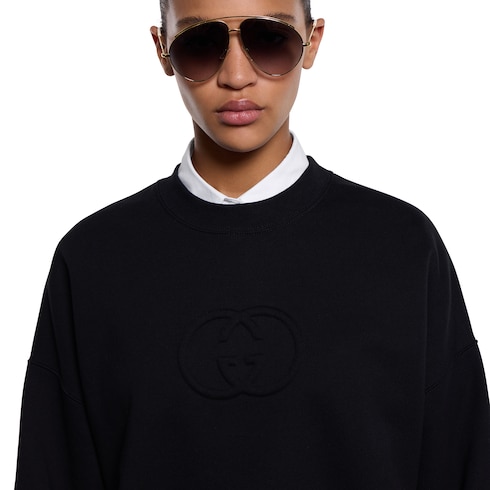 Parte della collezione Autunno Inverno 2025, questa felpa è realizzata in jersey di cotone spazzolato. Caratterizzata da un taglio ampio con vestibilità comoda, sfoggia un logo Incrocio GG in rilievo sul davanti ed è completata da finiture a coste sullo scollo, sui polsini e sull'orlo.