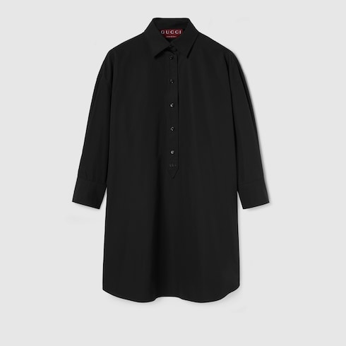 A monochrome palette with subtle details, such as embroideries or logo hardware, transitions the wardrobe from day to night in a selection of pieces from the Pre-Fall 2025 collection. This cotton poplin shirt is defined by a subtle Gucci embroidery.