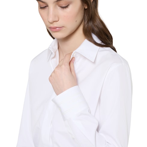 Realizzata in una palette monocromatica impreziosita da dettagli discreti, come ricami raffinati o il logo in metallo, una selezione di capi della collezione Pre-Fall 2025 rappresenta la scelta perfetta per ogni ora del giorno. Questa classica camicia in popeline di cotone presenta una paramontura frontale che nasconde la chiusura con bottoni ed è arricchita da un ricamo Gucci.
