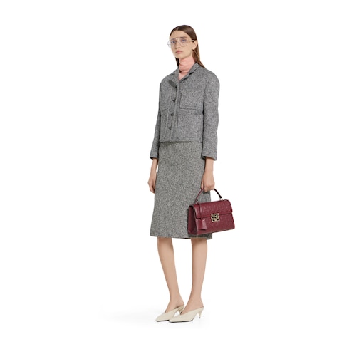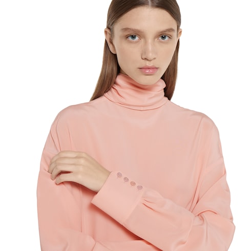 Parte della collezione Autunno Inverno 2025, questa blusa a maniche lunghe è realizzata in crêpe de Chine e definita da un collo a foulard. La silhouette morbida e leggermente strutturata presenta un taglio a spalle basse e polsini con bottoni.