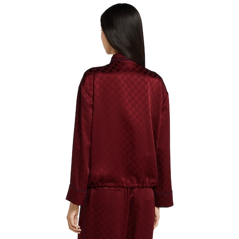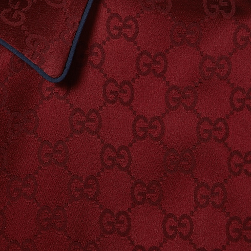 Dalle tonalità tenui ai colori più intensi, capi eleganti realizzati in materiali raffinati sfoggiano silhouette sensuali che valorizzano e arricchiscono la collezione Pre-Fall 2025. Questa camicia è realizzata in raso GG e presenta finiture con profilo blu, una tonalità complementare a contrasto.