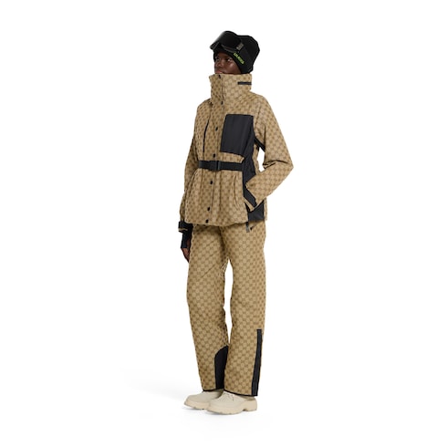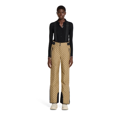 Gucci Altitude, la prima collezione di abbigliamento sportivo invernale della Maison, combina prestazioni elevate e codici distintivi. Questo paio di pantaloni, dotato di bretelle regolabili, è realizzato in poliammide GG jacquard a tre strati, un materiale impermeabile, antivento e traspirante.
